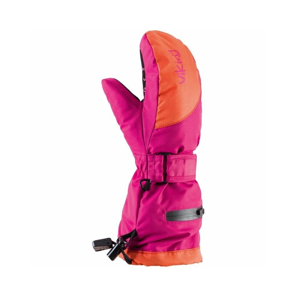 Dětské rukavice Viking Mailo jsou modelem s pohodlným střihem a praktickými řešeními, jako je dlouhá manžeta a nepromokavá kapsa. Díky použité membráně Aqua Thermo Tex s parametry voděodolnosti / prodyšnosti 8000/8000 jsou rukavice nepromokavé a udržují ruce v suchu i při dlouhých aktivitách. Praktická úprava s dlouhou manžetou, která umožňuje nasadit rukavice na rukáv bundy, dobře chrání ruce před chladem a sněhem. Praktický kontrastní silikonový potisk na spodní straně rukavic zaručuje jistý úchop a minimalizuje sklouzávání.
